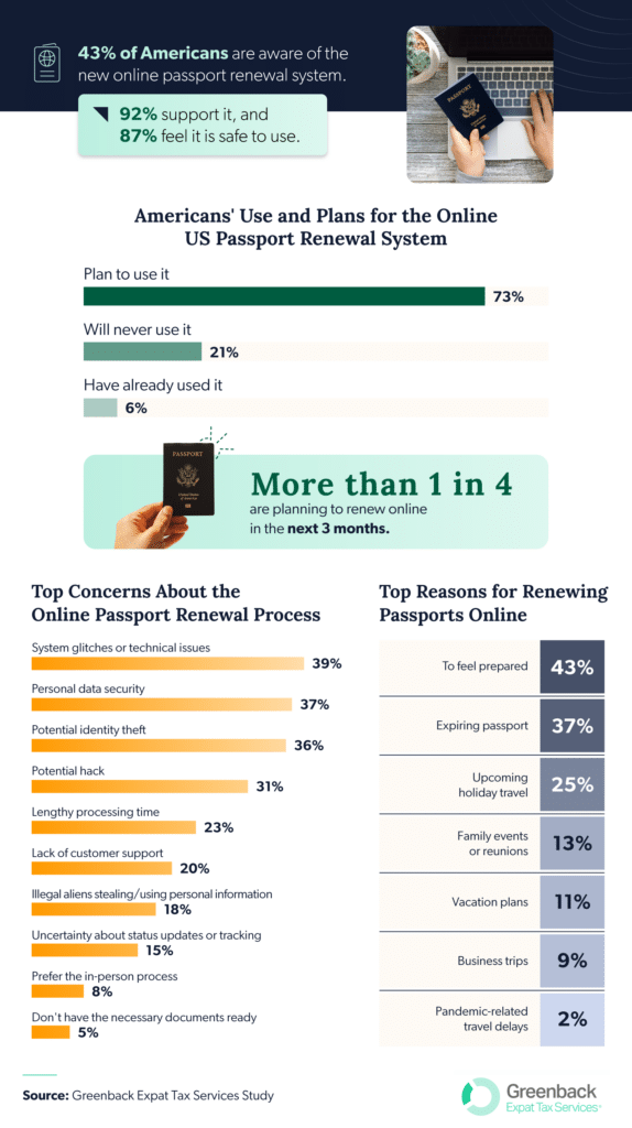 - 92% of Americans support the online US passport renewal process, and 87% feel it’s safe to use.