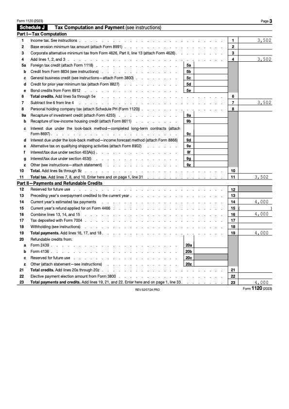 On page 3 (which has the heading, ‘Schedule J Tax Computation and Payment’), the corporation determines the ‘total tax’ that is referenced on page 1 by: