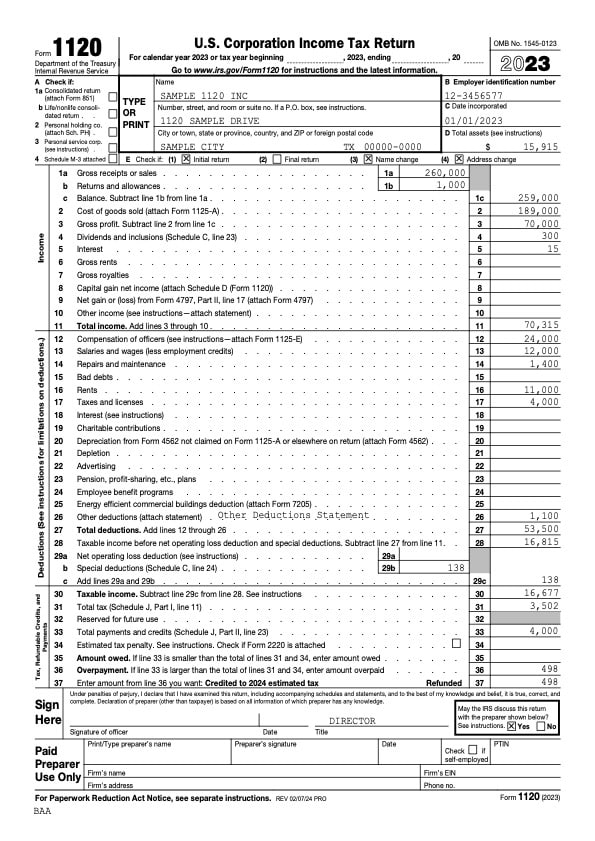 Because Form 1120 is so complex, it’s always wise to start preparing long before the deadline, if possible. Keep relevant financial records organized and on hand throughout the year. That way, when the time comes to file, you’ll have everything you need.