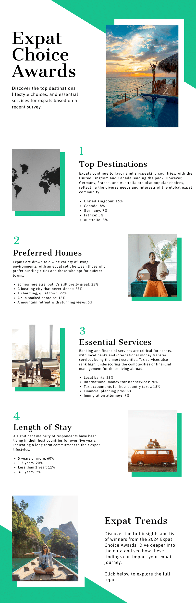 The 2024 Expat Choice Awards survey provides a detailed snapshot of the expat experience, offering valuable insights into their preferences and challenges. By understanding these needs, service providers can better cater to the expat community, ensuring a more seamless transition and experience abroad.