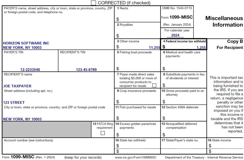 Miscellaneous Income is used to report all forms of income that don’t fit neatly into the other 1099 form categories. Common examples include: