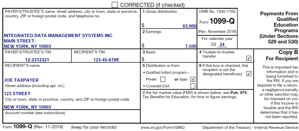 Payments from Qualified Education Programs are used to report payments that you, your child, or your child’s school received from a 529 college savings plan. (Keep in mind that when used for qualified education purposes, 529 payments are generally not subject to tax. Thus, this 1099 form will only be for record keeping in most cases.)
